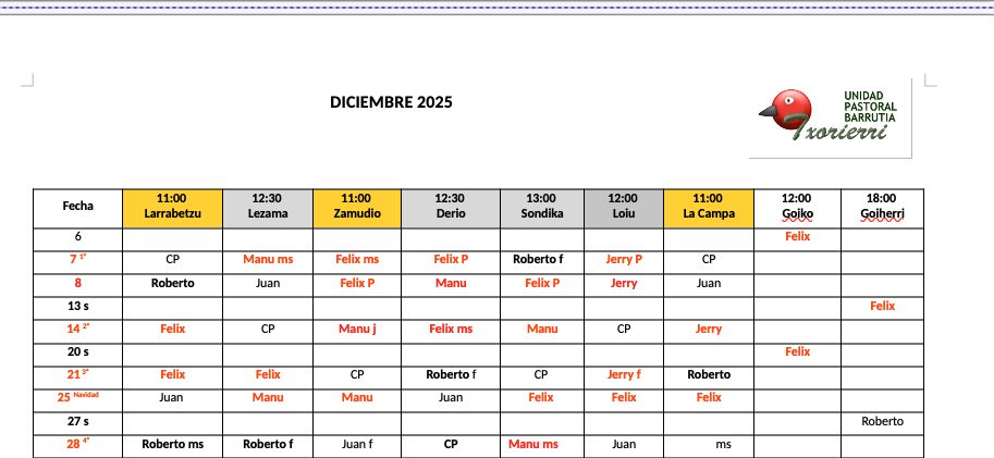 Horario de celebraciones
